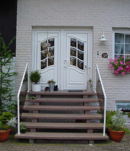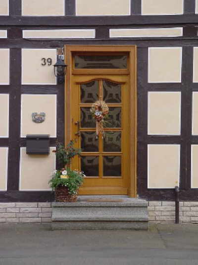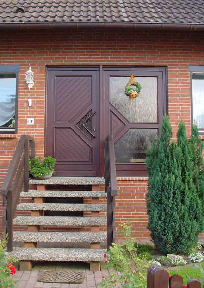 Haustür in Meranti mit Ornamentverglasung Fam. Rusteberg, Im Bohnrot